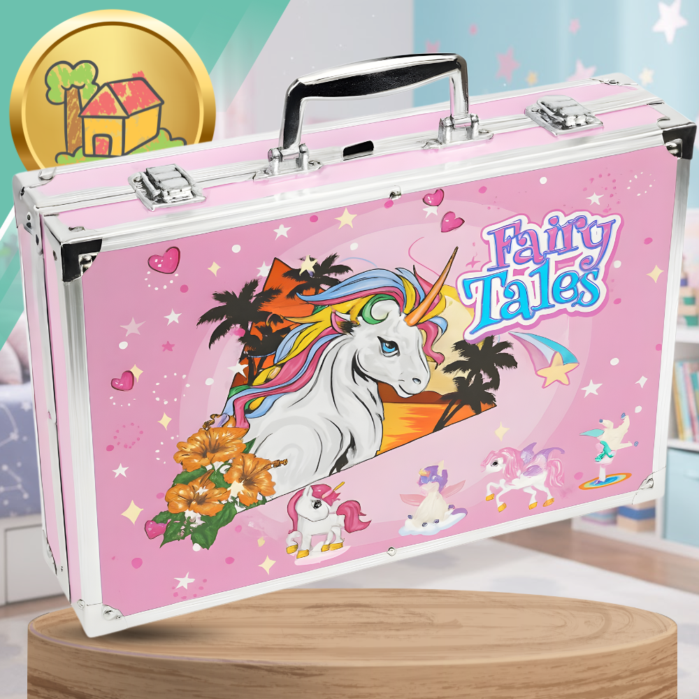 Раскройте творческий потенциал вашего ребенка с этим великолепным набором для рисования из 145 предметов! Всё необходимое для творчества в одном удобном и прочном алюминиевом чемоданчике с очаровательным дизайном единорога.