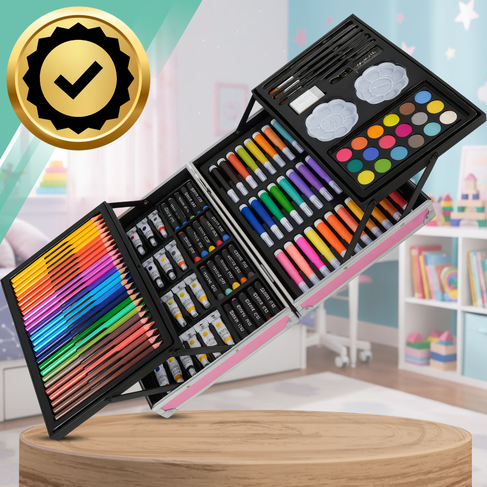 Ключевые преимущества:- Всё в одном: 145 предметов, включая карандаши, фломастеры, масляную пастель и различные краски, позволяют экспериментировать с множеством техник.
