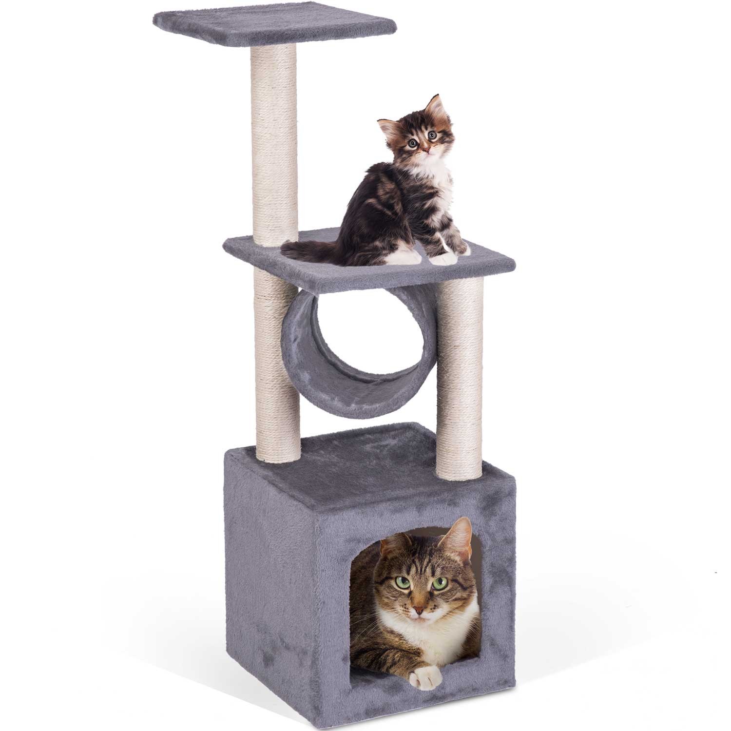 - 3 столба, обмотанных прочной сизалевой веревкой: Идеально подходят для заточки когтей вашего питомца.