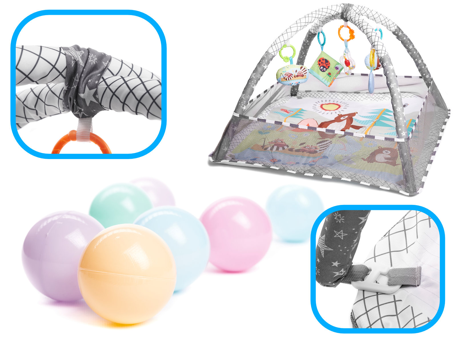 Развивающий Детский Коврик Мат Манеж Бассейн с Шариками и Игрушками, Cерый