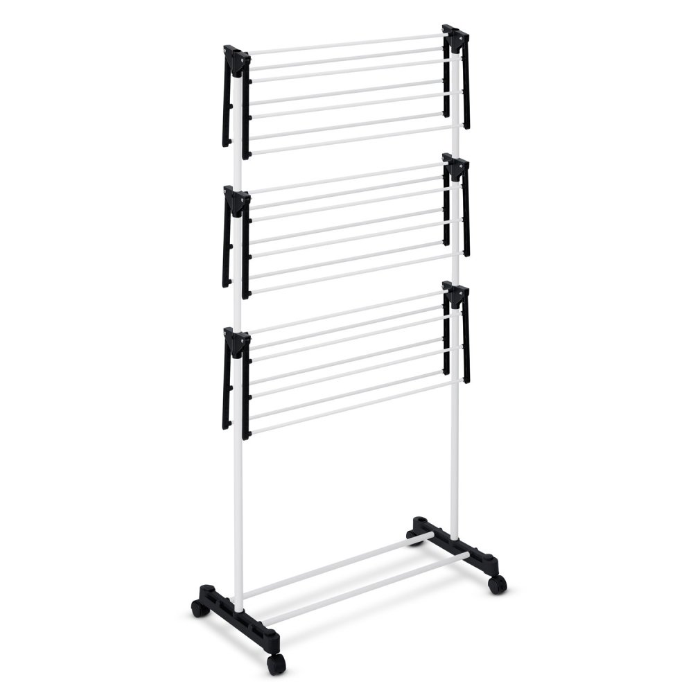 Ietaupiet vietu ar vertikālo veļas žāvētāju Massido Delia! Ar 15 metriem žāvēšanas virsmas, 6 salokāmiem plauktiem un ritentiņiem, tas ir ideāls risinājums mazām telpām.