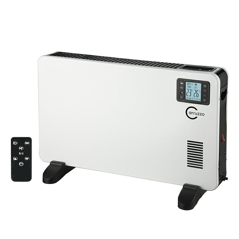 Ražotājs: Carruzzo Specifikācija: jauda: 800/1200/2000 W (atkarībā no karstuma līmeņa iestatījuma) barošanas avots: 230 V 50/60 Hz 3 sildīšanas jaudas līmeņi telpu apsildes režīms ierīce ieslēdzas, kad apkārtējās vides temperatūra zemāka par 5°C, izslēdzas, sasniedz 9°C ventilatora funkcija aizsardzība pret pārkaršanu temperatūras kontrole 5-37st.C c/F skala lCD displejs taimeris 1-24h tālvadības pults mērīšana kabeļa garums: 1,4 m izmēri: 60,x39x25cm (ar kājām) iepakojuma 65x43x14cm Daudzums uz paletes: 38