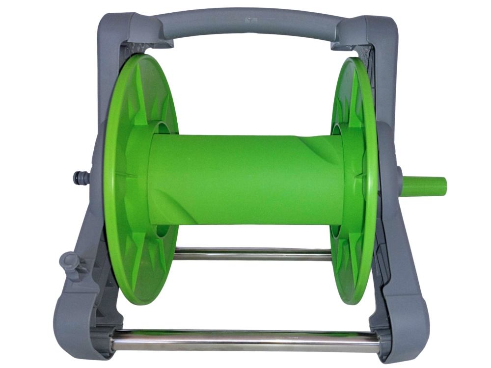 Spole ir aprīkota ar ergonomisku rokturi, kas ļauj ātri un vienmērīgi uztīt šļūteni, novēršot tās sapīšanos un lūšanu. Izturīgā konstrukcija nodrošina stabilitāti lietošanas laikā, savukārt ērtais pārnēsāšanas rokturis ļauj to viegli pārvietot pa dārzu.
