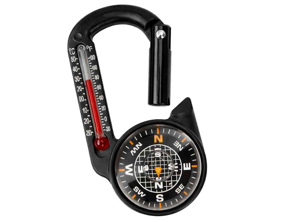 Sagatavojieties jebkuram piedzīvojumam ar šo 2-in-1 magnētisko karabīnes kompasu un termometru. Ideāls un viegls izdzīvošanas rīks pārgājieniem un kempingam.