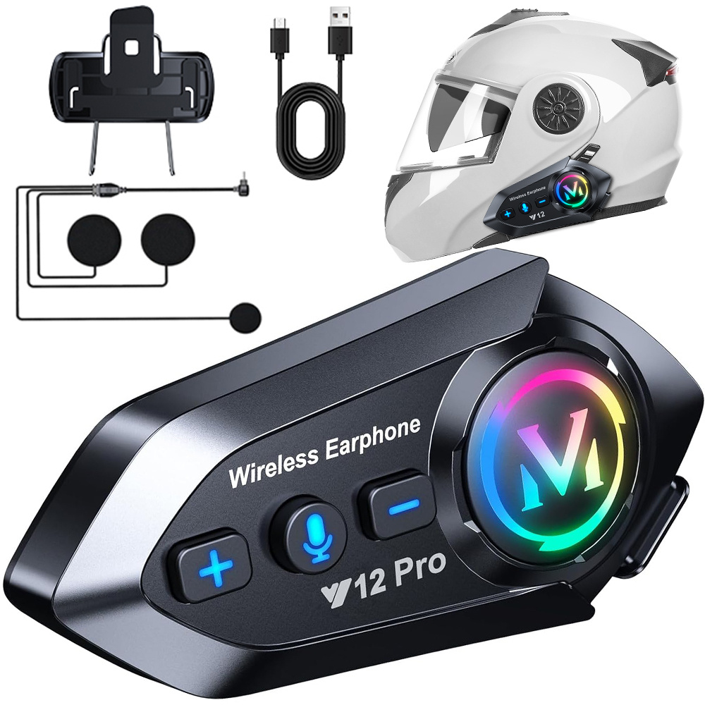 Uzlabojiet savu braucienu ar Y12 Pro motociklu Bluetooth interkomu. Izbaudiet brīvroku zvanus, mūzikas vadību un balss asistentu tieši no savas ķiveres.