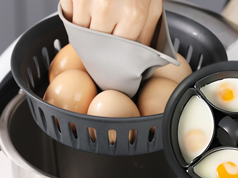 Šis praktiskais olu vārīšanas ieliktnis ir funkcionāls aksesuārs jūsu virtuves kombainam, kas ļauj vienlaikus pagatavot līdz sešām olām. Tas nodrošina, ka olas gatavošanas laikā paliek stabilas, un to izņemšana ir ātra un ērta, novēršot apdegumu risku.